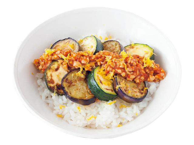 「焼き夏野菜の納豆味噌のっけ丼」のつくり方