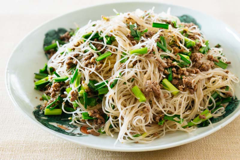 小麦粉の麺に比べて、あっさりとした味わいが特徴です。野菜や肉、海鮮と相性がよく、幅広く親しまれています。消化もよいため胃にやさしい食品としても知られています。