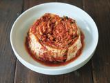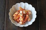 まるで浅漬けのように、さっと漬けてあえるだけのキムチ。柿は熟しすぎない、食感が残るものを使います。