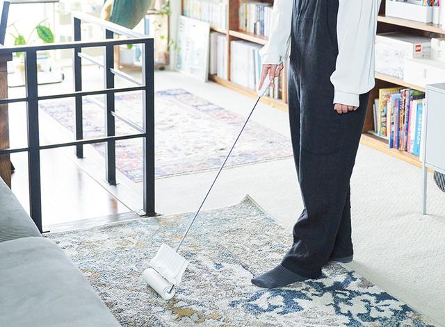 画像: 掃除機をかけるほどでもないとき、カーペットの奥に入り込んだクズなどの掃除のときに活用。使用時は、一体型のケースが羽のように上にあがる仕組み。「腰をかがめず使えてとても手軽です」