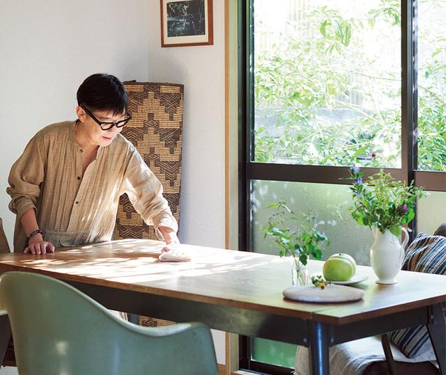 来客前は、ふだん目が届かない椅子の下など、隅々までチェック。カトラリーを磨き、花を飾って、空気感を一新します。