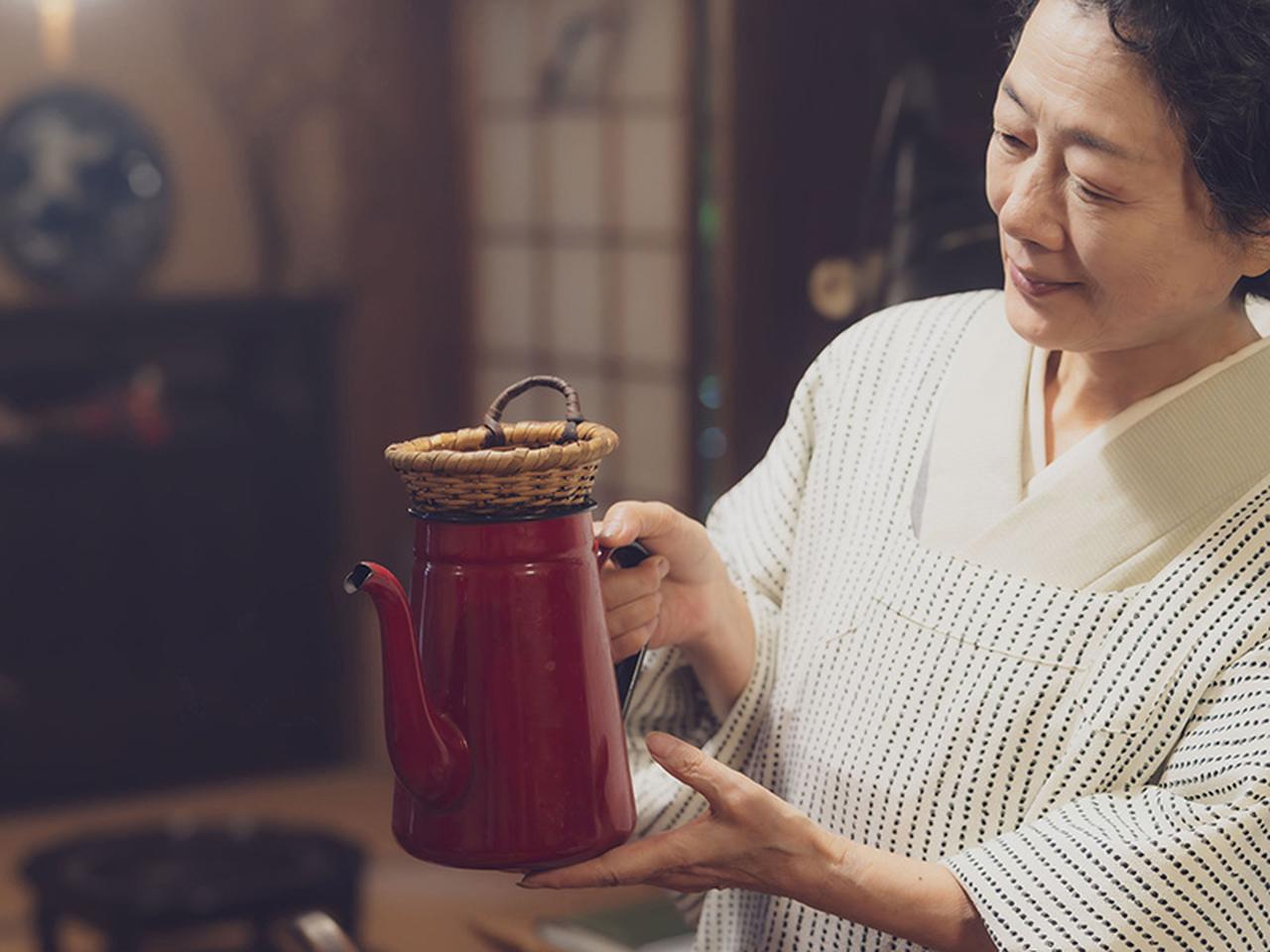 長野県に住む、郷土料理研究家の横山タカ子さんは、毎朝コーヒー豆をミルで引き、ていねいにドリップして、ホーローのポットに落とし、飲まれています。