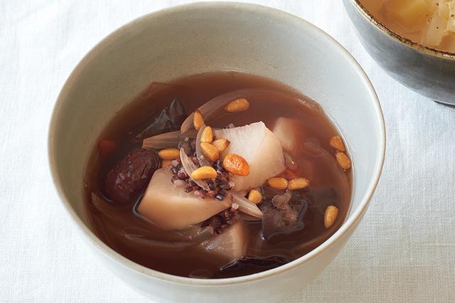 体のめぐりや代謝を調節する「腎」は冬に不調が出やすいといわれています。腎をケアする黒米、黒きくらげを使った薬膳スープで体をいたわりましょう。