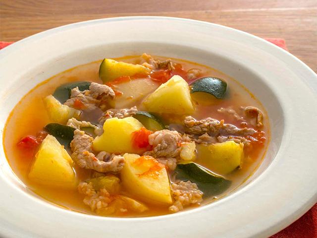 スープに使いやすいトマトとじゃがいも。そこに季節の野菜をプラスすると変化が出て、毎日でも飽きない味に!