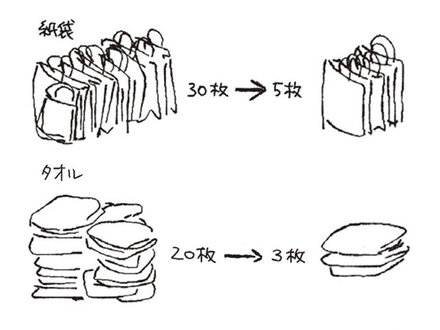 紙袋と同じように、どこまで少量でやっていけるのか一度試してみてください。たとえば「3つでいいんだ」とわかれば、その後の暮らしはなかなかにラクになります。