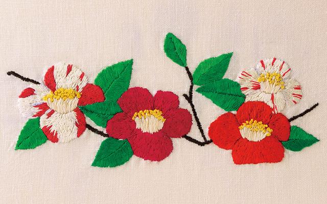 椿は大ぶりの花なので、一つひとつを大きく、思い切りよく刺しゅうしてみましょう。