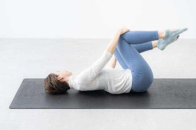 胸の方に膝を引き寄せながら骨盤を後傾させ、おしりがくっとめくり上がるような感覚を意識しましょう。