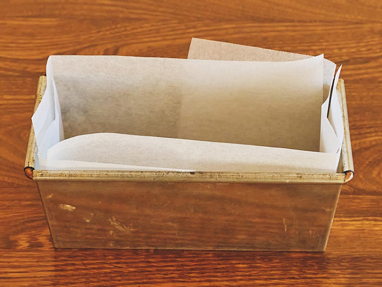 パウンドケーキなどをつくるときに活躍する「パウンド型」。シートが型から浮いてしまったり、余った部分がくるんと丸まってしまったりするのを防ぐ敷き方をご紹介します。