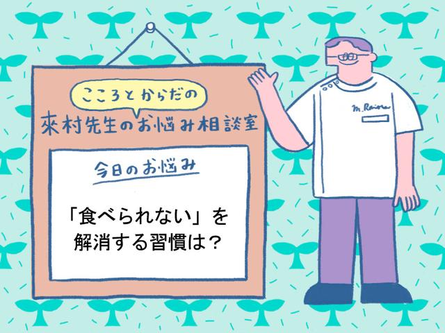 • 大人世代が抱える「こころとからだ」のお悩みや疑問について、頭痛・漢方専門「らいむらクリニック」の來村昌紀先生が、やさしく回答。今回は、食欲不振やお腹の張りにお悩みのショーコさんにアドバイスをお送りします。