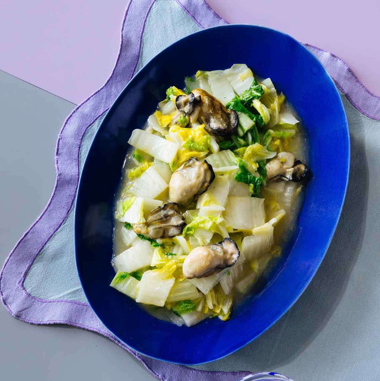 牡蠣のおいしさをまとった白菜は、白い部分はシャキシャキ、葉先はとろり。