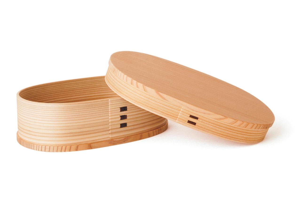 秋田杉でつくられた、曲げわっぱのお弁当箱。ウレタン塗装を施しているので、おかずの汁や油のシミ、調味料などの色移りに強く、お手入れも簡単です。