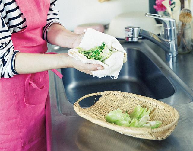 「サラダスピナーは場所もとるし、ひとつのことにしか使えないから」、野菜の水切りもさらしで