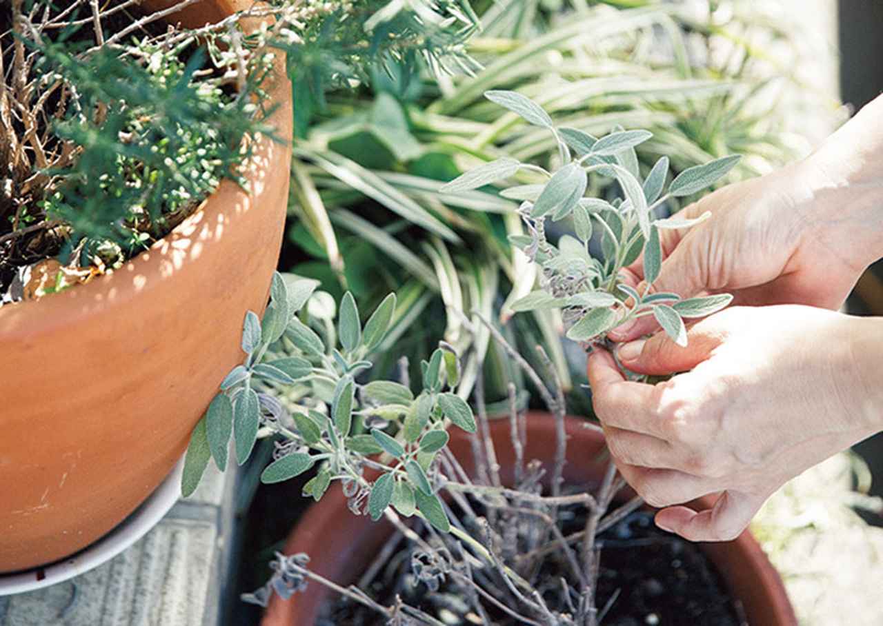 「セージは空間の清浄にいい。干して乾かした葉の先に火をつけ、お香代わりに。クローブはアルコールにつけて、ゴキブリよけのスプレーに」