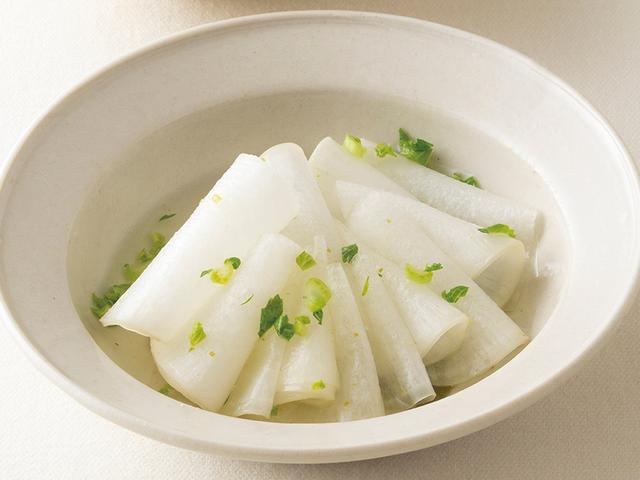 • 寒さのなかでうま味を蓄えた冬野菜たち。丸ごと買って、いろいろな料理に展開すれば日々の食費も大助かりです。今回は、家庭料理家本田明子さんに、大根の少しかたいところもある根元をおいしく使い切る「大根のゆずこしょう漬け」のつくり方を教わります。