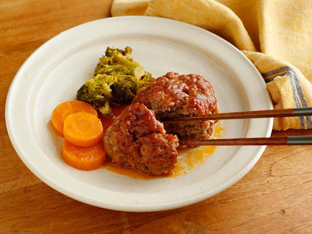 一般的なハンバーグはこんがり焼きつけますが、こちらは蒸して火を通すのでとってもやわらか。
