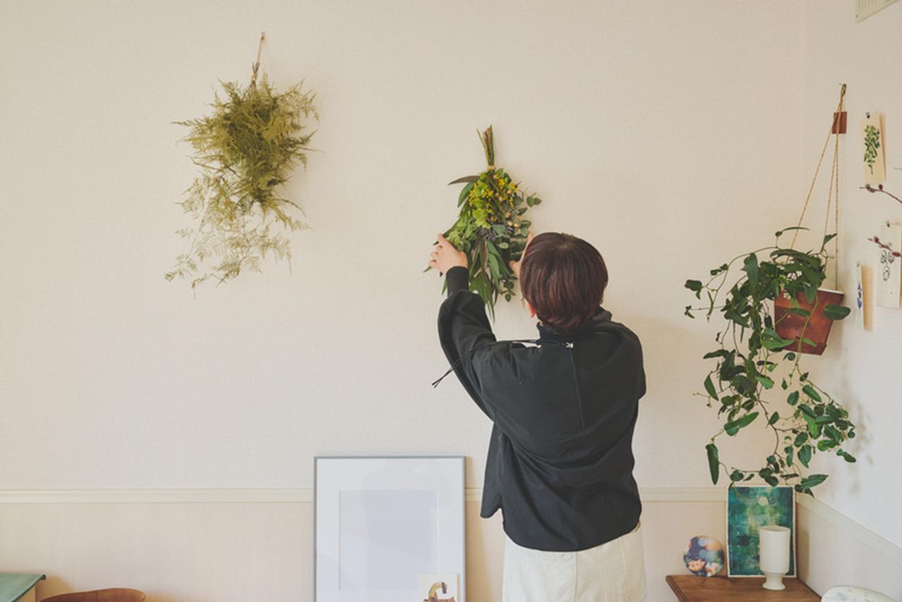吉原:スワッグとは、壁にかけたときに絵になるように植物を束ねたものです。私は“壁にかける植物のインテリア”って呼んでいますね。