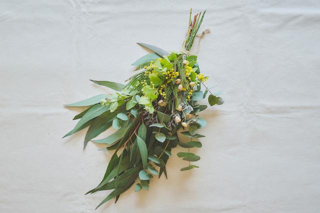 花屋さんで手に入りやすい植物を使った、だれでも手軽にできるスワッグのつくり方をご紹介します。季節を感じる花を加えるのがおすすめで、ここではミモザを使いました。