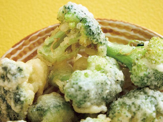 2 小なべにたっぷりの油を注ぎ、180度に熱する。ブロッコリーを小房に分けながら1にくぐらせてカリッとするまで揚げる。