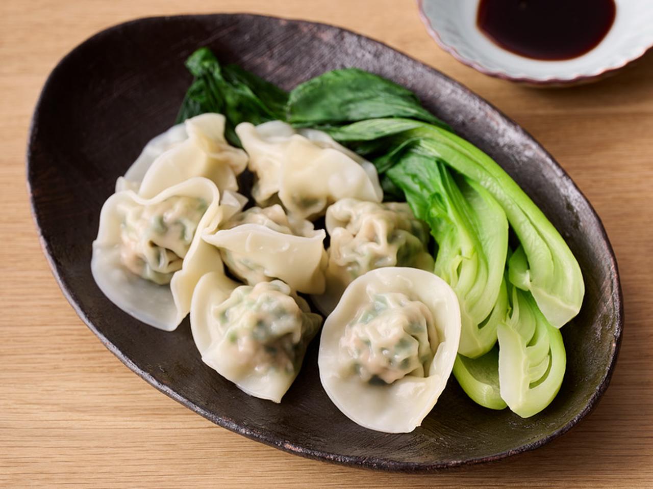 鍋にたっぷりの湯を沸かしてを食べる分だけ入れ、チンゲンサイも加えて一緒にゆでる。ぎょうざが浮き上がってから1分ほどゆで、チンゲンサイとともに引き上げて器に盛る。黒酢としょうゆ各適量を混ぜたものにつけていただく。
