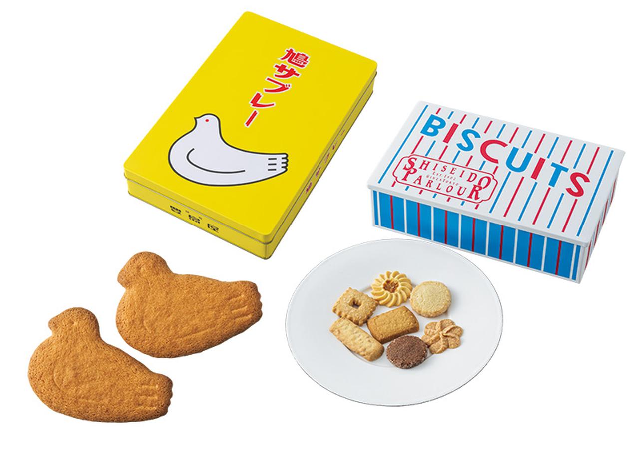 トリコロールのポップな缶も人気を二分するシックな花椿ビスケットとは対照的。