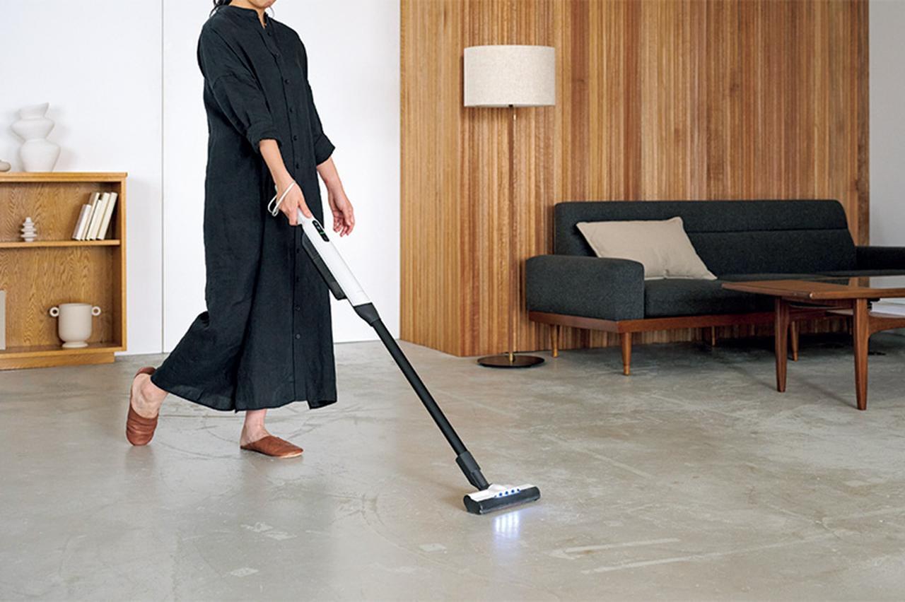 使い勝手と機能性を兼ね備えた、スタイリッシュなコードレス掃除機。約1kgと軽量かつ自走式で力要らず。強力なパワーブラシで絨毯のごみもしっかりキャッチ。