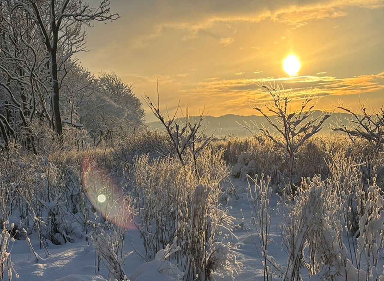それでも、冬の美しさは格別。-10℃を下回って冷え込んだ朝の、あたらしい雪がふわっと降った白い白い世界や、樹々を氷の結晶を覆う「霧氷」の様子には寒さも忘れて見入ってしまいます。その時しかない、住んでいないと見られない美しさだなと思います。