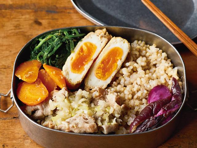 にんじんやほうれんそうは、豚肉と一緒に食べることで、その栄養素をより吸収しやすくなります。ビタミン、ミネラル、鉄分が効率よくチャージできるお弁当。