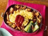 *炊飯器の場合は、内釜に1、Aを入れ、2合の目盛りまで水を注ぎ、同様に具材をのせて炊飯します。