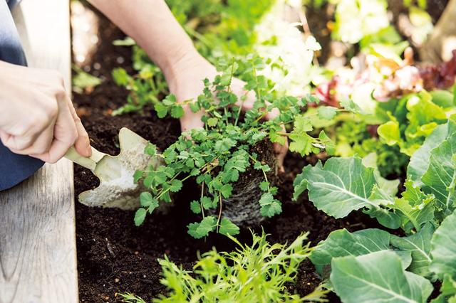 そこにふかふかの土を入れ、季節の野菜を少しずつ植えていきます。サラダに使える葉野菜に、彩りを添える小ねぎやパセリ。