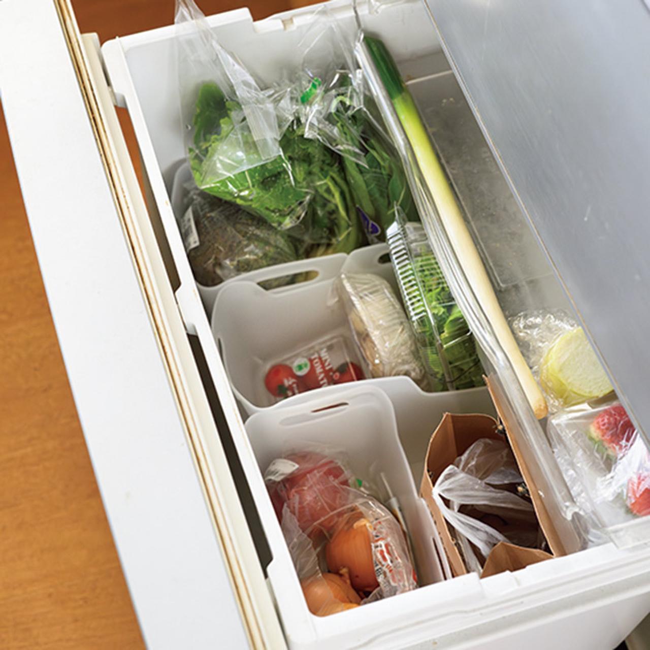 使いかけの半端野菜は、引き出し部分にひとまとめ。わかりやすくしまえばロスが出ない。