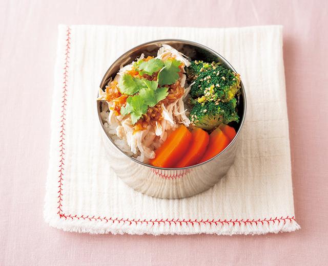 1 弁当箱にごはんを茶碗1杯分詰め、ねぎだれ(*次ページ)大さじ1をかける。