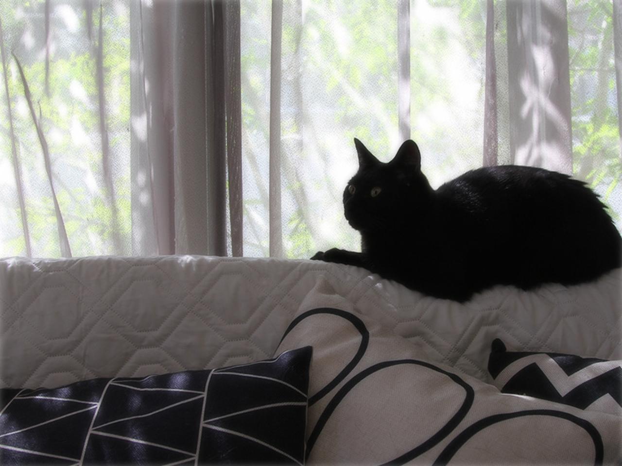 少しだけ網戸を開けて、甘い香りが風にのって届くと、猫たちも窓辺に集まり同じ方向を見ています。